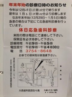 年末年始の診療日のお知らせ
