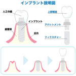 また、インプラント体や土台は目で確認することはできませんので、お口を開けたときに見えるのは人工歯の部分だけです。