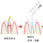 歯の内部に細菌が残った状態のままだと、むし歯の再発を繰り返す原因になるため、しっかり洗浄・消毒をします。
